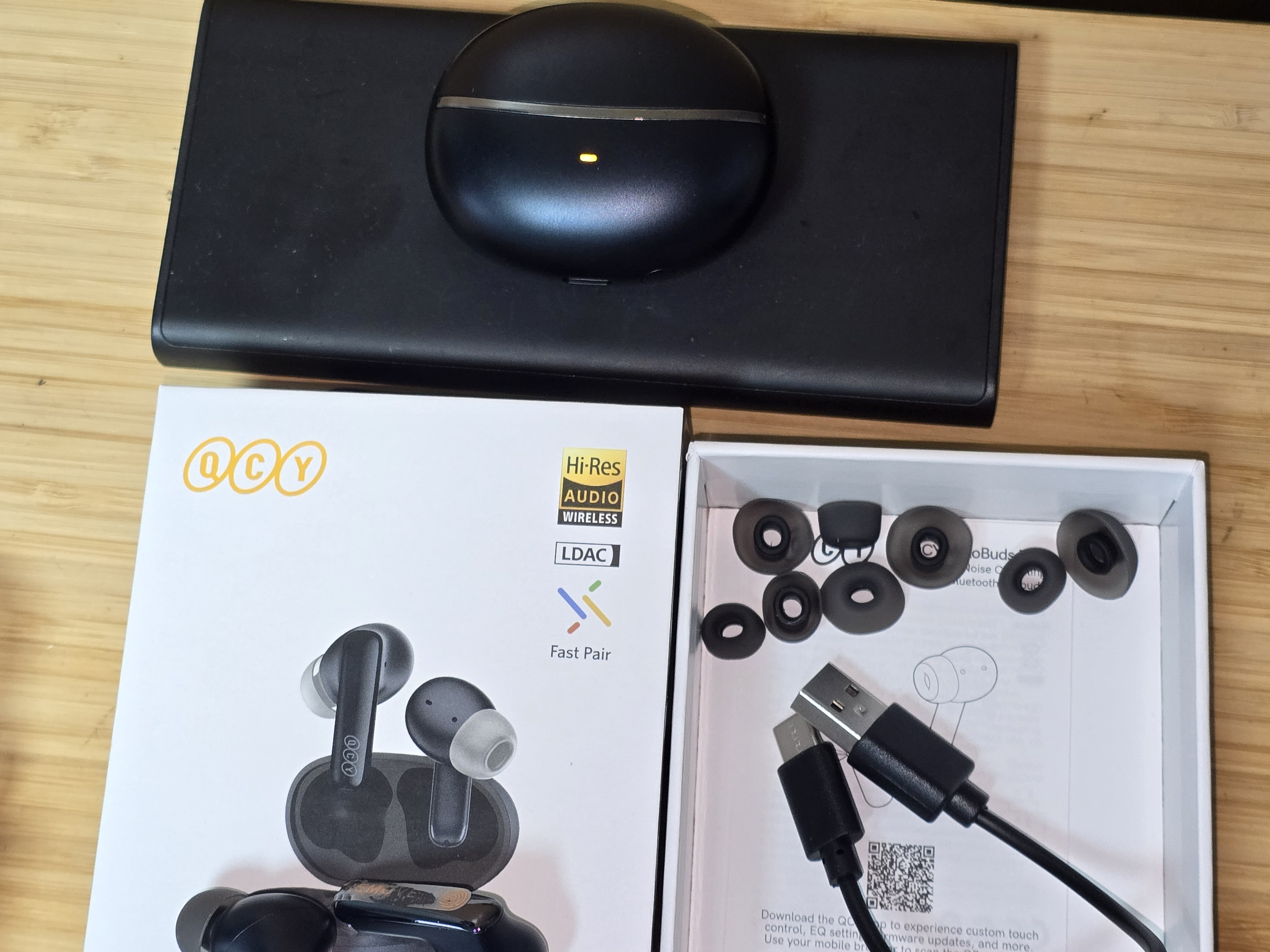 구매 포인트(개인): 전작 QCY 멜로버즈 Pro 사용자였는데 케이스 무선충전(Qi) 추가가 결정타였음.- 가격/포지션: 5만원~ 6만원대 중가 가성비 QCY의 플래그십 블루투스 이어폰